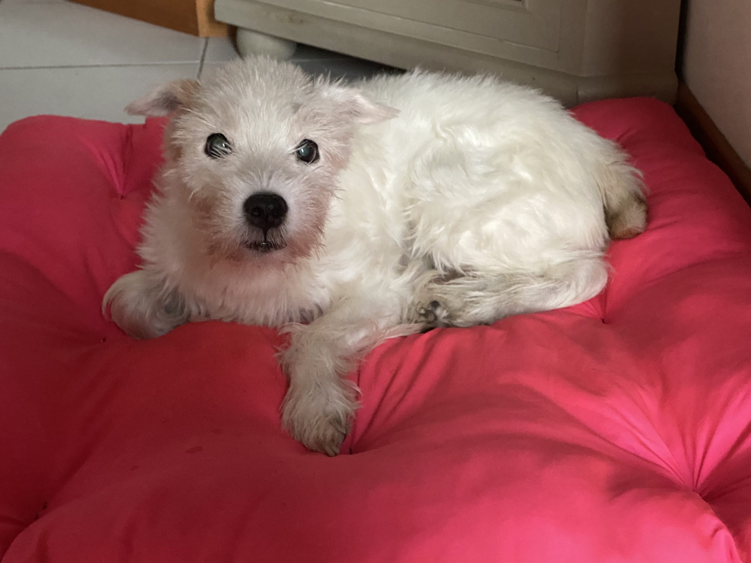 In questa foto sono appena uscita: avete visto che bel fiocchetto rosa mi hanno messo oggi? Però che stress, tra taglio e il fatto che devo stare lì da sola, quando torno a casa sono distrutta e devo farmi un riposino per riprendermi!